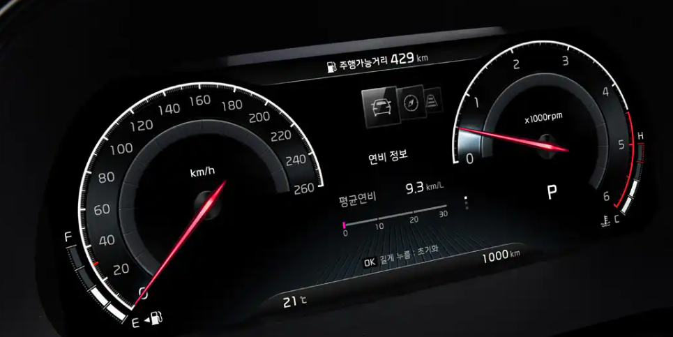 슈퍼비전 클러스터(12.3인치 풀사이즈 칼라 TFT LCD), 프리미엄 스티어링 휠, 도어 센터트림 인조가죽 감싸기, 입체 패턴 앰비언트 라이트, 메탈 도어스커프