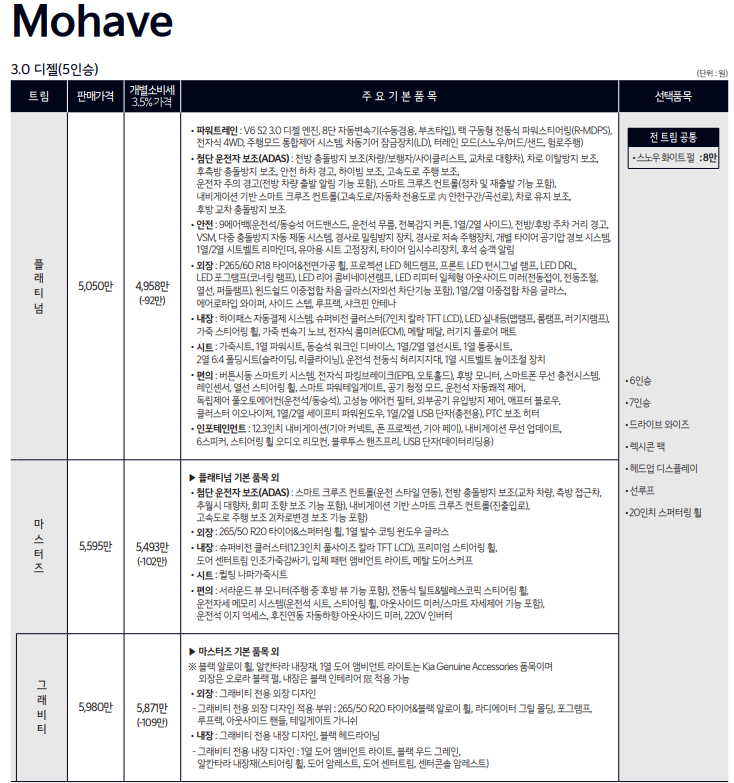 모하비 가격표