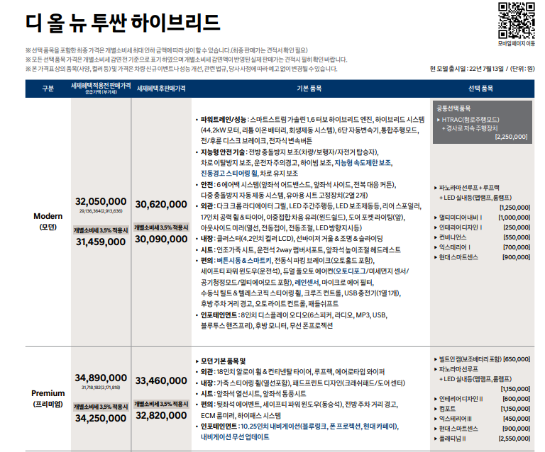 | 스마트스트림 가솔린 1.6 터보 하이브리드 AWD (18 inch) |