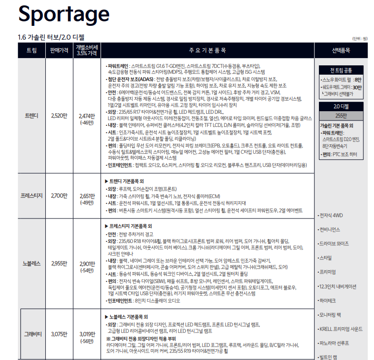 스포티지 하이브리드 가격표