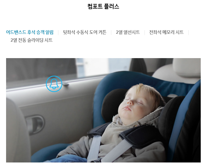 6에어백 시스템(운전석/동승석 어드밴스드 에어백, 앞좌석 사이드, 커튼, 전복감지센서 포함), 전방/후방 주차 거리 경고, 세이프티 언락, 유아용 시트 고정장치(2열 2개), 가상 엔진 사운드(보행자 보호), 다중 충돌방지 자동 제동 시스템